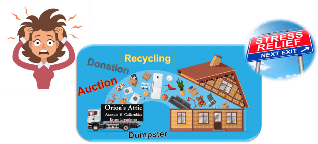 For a quick primer on the downsides of estate sales, check out our story on how an estate sale can go wrong from the first time an estate sale company visits your house. And check out this story on 13 disadvantages of estate sales. Like short but informative videos? Take a look at this short OrionsAtticTV YouTube video interview with a Realtor who brought us in after a family attempted an estate sale that backfired.